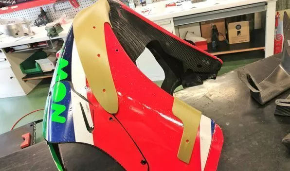 - В короткие сроки изготовлены аэродинамические элементы мотоцикла, благодаря которым удалось увеличить прижимную силу и, следовательно, сцепление с асфальтом.